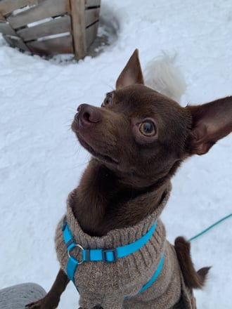 Voici Oslo, chihuahua de 3 ans, c'est le dernier arrivé dans la famille, c'est aussi le plus petit mais c'est celui qui prend le plus de place... Ne vous fiez pas à sa taille c'est un véritable athlète croisé avec une pile électrique.